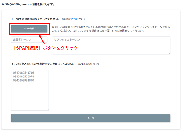 ※SPAPI連携がお済の場合は以前に取得したリフレッシュトークンをご利用いただけます。