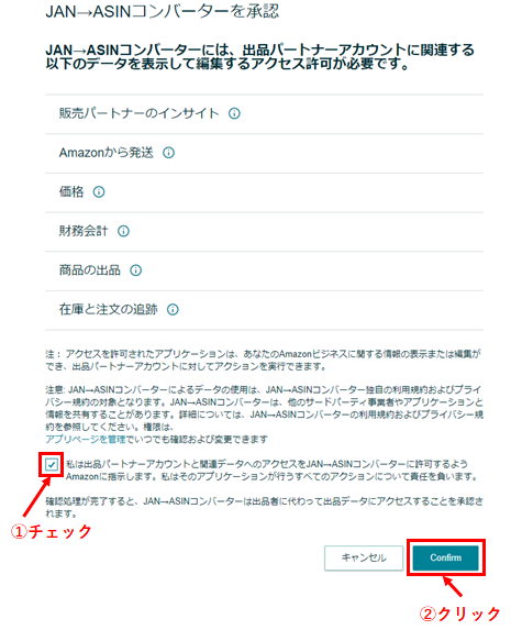 amazonセラーセントラルでJAN ASIN CONVERTERを承認します。
