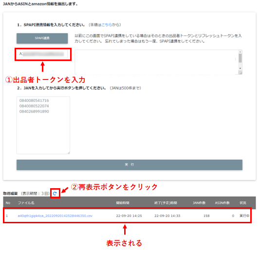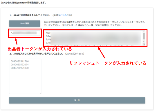※出品者トークンとリフレッシュトークンを保存しておくと、次からはSPAPI連携操作を省略できます。